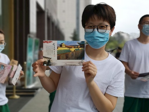 3月26日下午,人民日?qǐng)?bào)社新媒體中心、武漢市郵政分公司、武漢武昌區(qū)疫情防控指揮部共同舉辦“同舟共濟(jì) 感恩有您”為援漢醫(yī)療隊(duì)贈(zèng)禮活動(dòng),醫(yī)療隊(duì)員們對(duì)武漢風(fēng)光明信片愛不釋手。圖為醫(yī)療隊(duì)員展示自己最喜歡的武漢大學(xué)風(fēng)光明信片。□李漢梅 攝