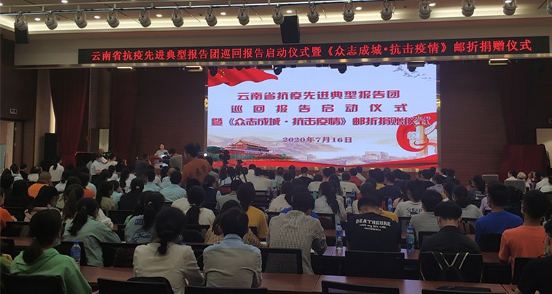 2020年7月16日,云南省抗疫先進典型報告團巡回報告啟動儀式暨《眾志成城抗擊疫情》郵折捐贈儀式在昆明醫科大學第二附屬醫院舉行。
