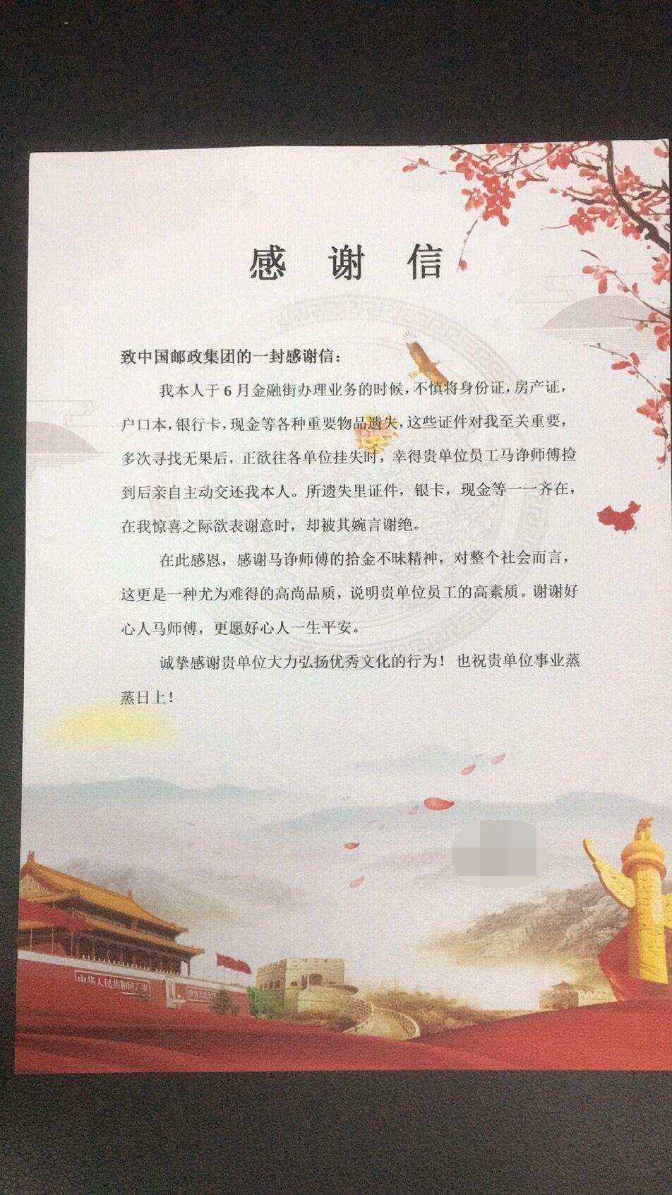 就在前幾天,一位手拿錦旗的用戶來到了西城區(qū)西單支局金融街營業(yè)部的門前,點名要找郵政小哥馬諍師傅。