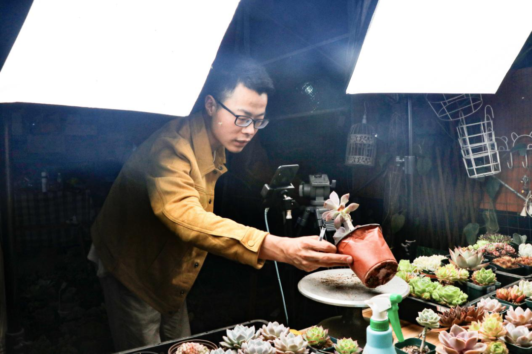 直播的時候,徐曉華全家齊上陣,自己做主播,妻子做直播小助手,姐姐負責上鏈接做后臺運營,爸媽管后端訂單發(fā)貨。如今,“火”起來的“多肉小王子”徐曉華,經(jīng)營著近1000種多肉植物,年銷售額近500萬元。