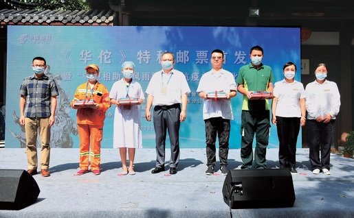 8月19日,適逢“中國醫(yī)師節(jié)”,湖北省武漢市郵政分公司在黃鶴樓公園舉行《華佗》郵票首發(fā)儀式暨“守望相助,風(fēng)雨同舟”抗疫主題文化展。在活動現(xiàn)場,武漢郵政向在新冠肺炎疫情防控期間勇敢逆行、默默奉獻的醫(yī)護人員、環(huán)衛(wèi)工人、快遞員代表贈送了精美的郵品,向守護城市的逆行者表達衷心的感謝和崇高的敬意。武漢郵政藝術(shù)團還帶來了精彩的文藝表演,來自武漢少年郵局的學(xué)生代表朗誦了“致敬最美逆行者的一封信”,受到了現(xiàn)場觀眾的歡迎。