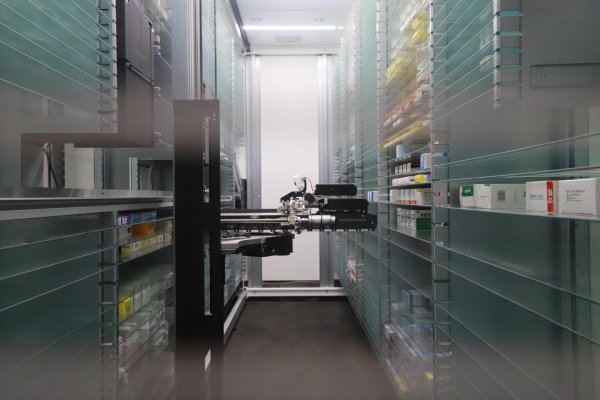 為何叫“智慧藥房”,其智慧又體現在何處?記者發現,有別于傳統線下零售藥房,近150平方米的大廳,少了一排排貨架,多了觸摸屏等自助服務終端和一個貯有12000多盒藥品的冷鏈庫房。透過庫房櫥窗玻璃,記者看到一個機械臂正在迅速敏捷地循環往復進行配藥出藥,其原理是根據前臺發出的電子處方,通過激光實現精準定位,最快只需15秒即可完成配藥。記者還了解到,智慧藥房使用的全自動發藥機,系全國藥品零售藥房第一臺,該設備主要用于醫院。