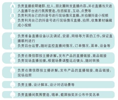 通過制作工作任務行動表和制作直播流程安排表進行人員安排,保證工作人員與直播環(huán)節(jié)緊緊相扣。