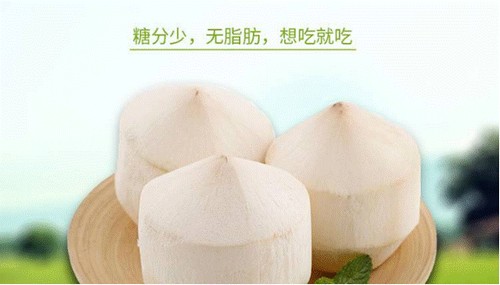 現在越來越多的人都提倡健康飲食,喜歡純天然的食材,這款純天然的飲料--文昌椰青正好可以滿足您對健康生活的追求。新鮮的椰水清香甘甜、潤喉止渴,雖帶有甜味卻是低糖低熱量的一款飲品。喝完椰水一定要再嘗嘗里面色如白玉、爽滑細膩的椰肉,濃濃的椰子香跟著嫩滑的椰肉在你的嘴里縈繞。