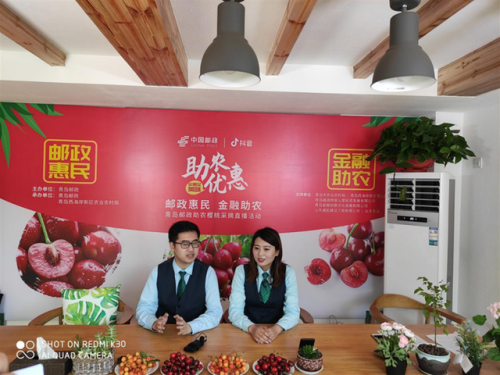 青島郵政開展助農櫻桃采摘直播活動。(央廣網發 辛立寶攝)