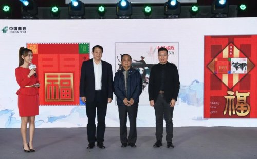 在2021辛丑年即將到來之際,今天(11月5日),中國郵政集團有限公司在中國郵政郵票博物館舉辦2021年賀年有獎明信片、賀年專用郵票發布會,向社會發布以“生肖?!睘橹黝}的普通明信片、極限明信片、祝???021年賀年專用郵票。本次發布會主題為心里“郵”你、為愛發光。中國郵政集團有限公司黨組成員、副總經理王儉,著名藝術家韓美林,郵票印制局設計總監王虎鳴,清華大學美術學院博士生導師陳楠教授,南開大學東方藝術系副教授張旺,中國工藝美術協會會員武世寧,著名繪本畫家景紹宗,明信片文化創意設計大賽獲獎者段雅婕、潘振磊及中國郵政集團有限公司相關部門負責同志出席。王儉發表致辭,并與韓美林及與會嘉賓分別為賀年專用郵票小全張及明信片揭幕,與會嘉賓還分享了設計理念。
