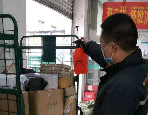 成都郵區(qū)中心局對(duì)郵件處理中心現(xiàn)場(chǎng)以及來(lái)自郫都區(qū)郵件進(jìn)行消毒處理