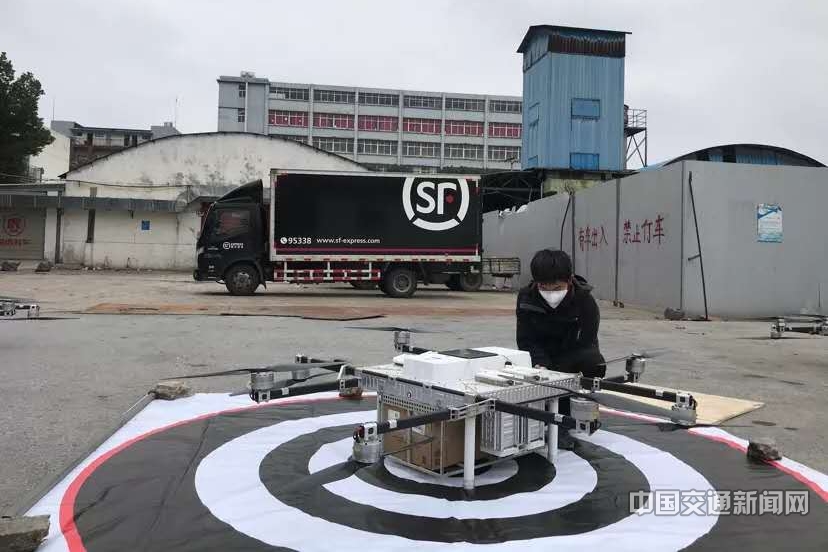 疫情防控期間使用無人機為武漢金銀潭醫(yī)院運送緊急防疫物資。