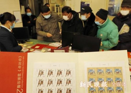 圖為在中國郵政上海金山區(qū)石化郵政支局營業(yè)大廳,集郵愛好者在排隊(duì)購買《辛丑年》特種郵票