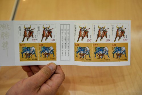 當日, “金牛賀歲” 2021辛丑年生肖郵票展覽在北京中國郵政郵票博物館舉行。《辛丑年》特種郵票設計者、藝術家姚鐘華接受新華社記者采訪,分享關于郵票創作的故事。《辛丑年》特種郵票的設計延續了第四輪生肖郵票的“家國”理念,郵票第一枚“奮發圖強”,描繪了雄壯有力、一往無前的奔牛形象。公牛四蹄揚起,昂首向前,目光炯炯,表達出不畏艱險、砥礪前行,為實現中華民族偉大復興而努力奮斗的寓意。第二枚“牛年大吉”,通過大牛與小牛舐犢情深的溫馨畫面,向全國人民傳遞家庭興旺和諧、團圓美滿的美好祝愿。