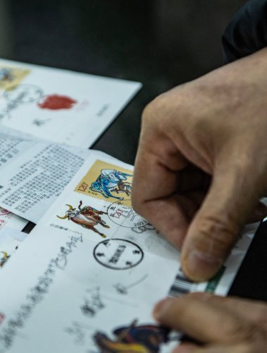 1月5日,貴陽市民在郵寄貼有《辛丑年》特種郵票的信件。新華社記者 陶亮 攝