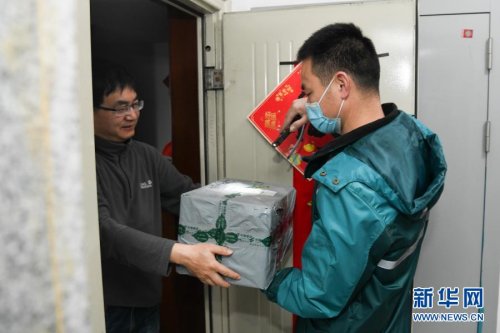 2月11日,中國郵政攬投員劉元元在安徽省合肥市青陽路社區(qū)一處居民小區(qū)內(nèi)派送快遞。當(dāng)日是除夕,不少行業(yè)的工作人員依然堅守崗位,在工作中迎接春節(jié)的到來。