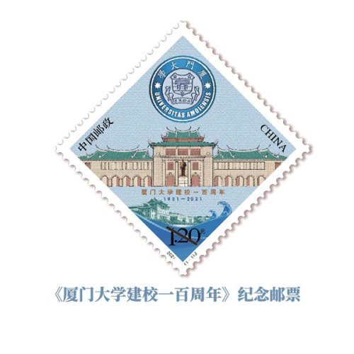中國郵政定于2021年4月6日發行《廈門大學建校一百周年》紀念郵票一套1枚,郵票面值為1.20元。