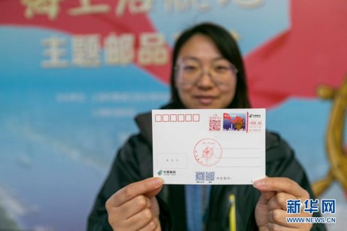 3月17日,黨員代表在《海上啟航地》主題郵品上寫上祝福語。