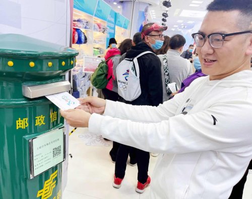 4月10日是北京冬奧會開幕倒計時300天,在王府井工美大廈一層的北京2022官方特許商品旗艦店內,多款倒計時系列產品集中亮相。當日,中國郵政集團有限公司北京市分公司發行的一款倒計時300天系列紀念封,在冬奧旗艦店內亮相首發,紀念封上貼有北京2022年冬奧會吉祥物郵票,十分具有紀念意義?;顒赢斕欤o念封設計者也蒞臨冬奧旗艦店現場,講述產品設計背后的故事,并進行了現場簽售。除熱鬧的簽售現場外,冬奧旗艦店內的郵筒也吸引了現場顧客的關注,有顧客選擇購買倒計時300天紀念封后,直接通過郵筒寄出,別有紀念意義。