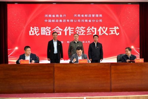 4月13日,河南省商務廳、河南省郵政管理局與中國郵政集團有限公司河南省分公司在鄭州簽署戰略合作框架協議,以充分發揮商務系統和郵政系統優勢,推動各方資源共享、優勢互補,進一步提高商務和郵政服務河南經濟社會能力,為農村流通體系建設營造良好的發展環境,在助推鄉村振興戰略實施上實現更大突破。