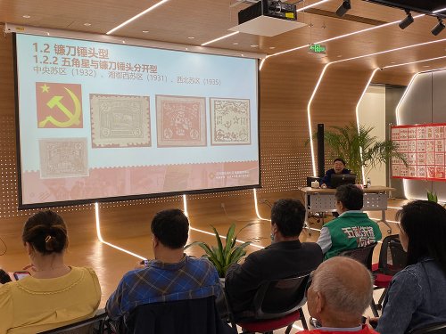 4月22日,閔行區第5季郵票黨課在閔行經濟技術開發區開講,原上海汽輪機廠副總工藝師、高工吳天明為聽眾帶來的是《黨徽、黨旗和黨章》,他的另一重身份是上海市集郵協會學術委員會委員、極限集郵研究會會長、閔行區職工集郵愛好者協會副會長。
