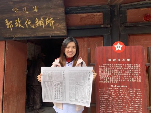 非常榮幸能夠參加“尋跡紅色郵政 傳承紅色基因”甘肅段全媒體采訪報道,從臘子口到哈達鋪再到會寧,追尋偉大的革命歷程、感悟偉大的長征精神。哈達鋪鎮,一間小小的郵政代辦所,一張報紙《大公報》,為長征中的紅軍指明了前進的方向——到陜北去,這一決定改變了革命發展的趨勢,改變了中國的命運。我要認真學習紅軍長征精神,立足崗位,勇于挑戰自我,攻堅克難,不負韶華,為寄遞事業發展貢獻青春力量。