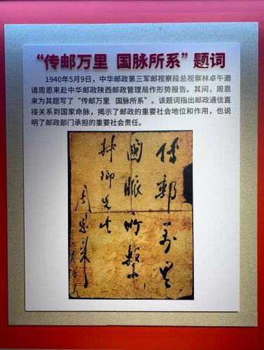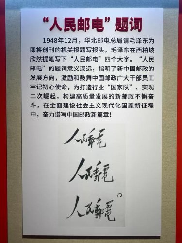 特別是在新民主主義革命時(shí)期,毛澤東題詞“人民郵電”,周恩來題詞“傳郵萬里 國脈所系”等珍貴文物,充分反映了郵政在社會(huì)發(fā)展中的重要地位和作用,指出了郵政事業(yè)為人民服務(wù)的性質(zhì)宗旨,明確了郵政人的初心使命。