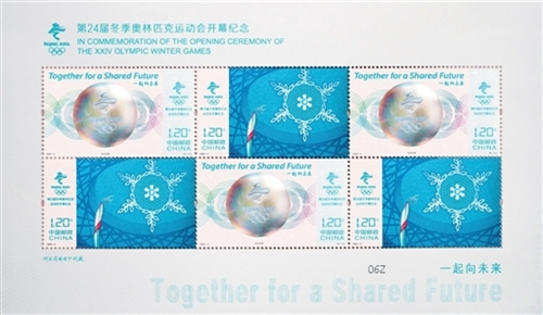 2月4日,北京冬奧會盛大開幕后,中國郵政正式發行《第24屆冬季奧林匹克運動會開幕紀念》郵票。該套郵票共2枚,圖案名稱分別為“共向未來”“希望之光”,郵票面值2.40元,計劃發行數量為1150萬套。該套郵票整體畫面簡約、精致,呈現出空靈、雅致、現代的設計感,非常契合本屆冬奧會開幕式理念,備受社會各界好評。