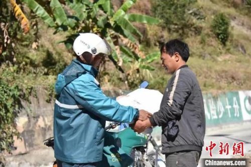 圖為除夕桑南才給收件人送件。桑南才供圖