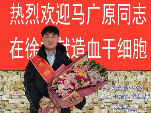2018年,在一次無償獻血時,馬廣原看到招募造血干細胞捐獻志愿者的海報,于是,在醫務人員的幫助下,讀大三的馬廣原毅然接受血液采樣,加入中華骨髓庫成為一名造血干細胞捐獻志愿者。