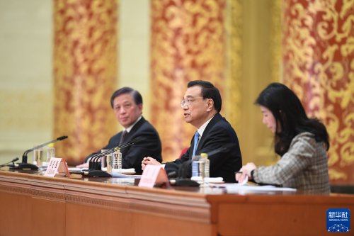 3月11日上午,十三屆全國人大五次會議在北京人民大會堂舉行記者會,國務院總理李克強應大會發(fā)言人張業(yè)遂的邀請出席記者會,并回答中外記者提問。新華社記者 李鑫 攝