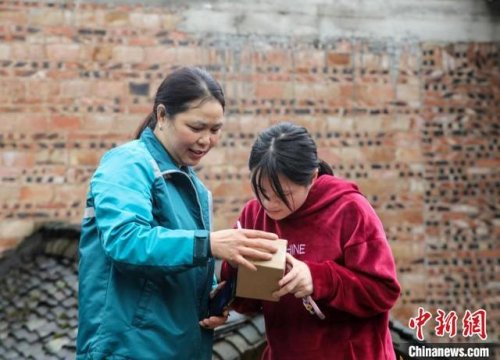 圖為一位村民簽收朱正琴投送的郵件。 磨桂賓 攝