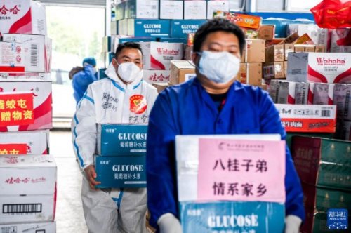 2月15日,在廣西百色市德保縣一處倉庫,工作人員在搬運(yùn)抗疫物資。新華社記者 曹祎銘 攝