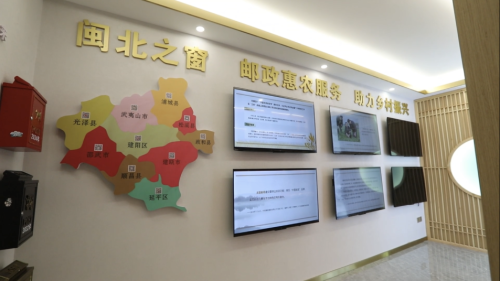 在郵局二樓的惠農(nóng)產(chǎn)品展銷中心,各類當(dāng)?shù)鼗蒉r(nóng)助農(nóng)產(chǎn)品琳瑯滿目,當(dāng)中展陳銷售的不僅有武夷三寶(即東路上梅的筍干,南路武夷鎮(zhèn)、星村鎮(zhèn)的茶葉和北路嵐谷的北米),還有五夫白蓮、香菇干、黑木耳等武夷農(nóng)特產(chǎn)品。