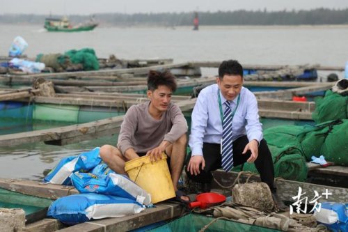 郵儲(chǔ)銀行廣東省分行客戶經(jīng)理登上魚排與漁民交流。