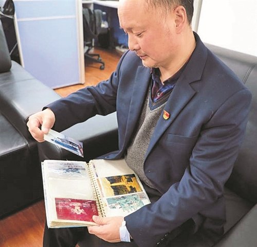 韓新剛翻著相冊,回憶軍旅生活。