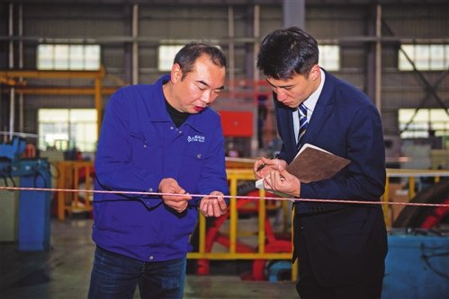 福建省分行客戶經(jīng)理(右)走訪小微企業(yè)、了解生產(chǎn)情況。