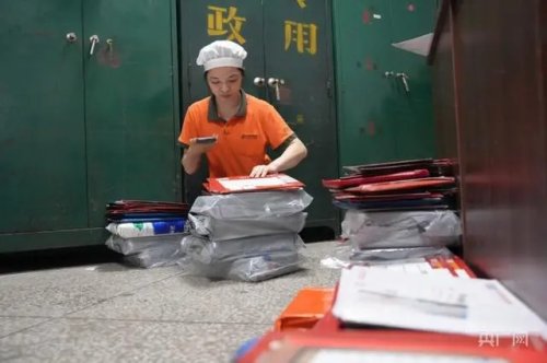 工作人員正將錄取通知書進行分揀(央廣網記者 李芳森 攝)