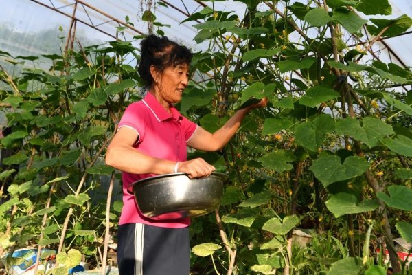 沿著村路往前走,房屋整齊,路面整潔,花草相伴,偶有瓜果的清香縈繞鼻尖。采訪組看到了一戶農家門前掛著“郵選小園地5號園”的綠色小牌匾。郵政工作人員說,這里就是正在火熱進行中的郵政小園菜項目貨源終端,由郵政實地考察認證,承諾整個農作物的種植過程綠色健康。別看每家小菜園的規模比較小,但這個項目卻是村民們最津津樂道的,也是最接地氣的。
