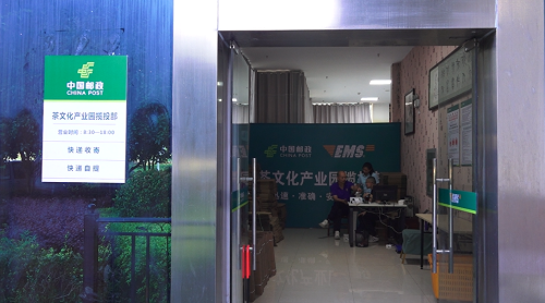 在茶博園主樓旁就是赤壁郵政茶博園攬投部。屋子里,郵政人正在忙碌地打包著準備上車的包裹。今年以來,從這寄出的茶葉包裹上千件。