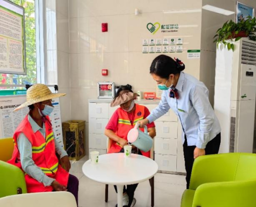 為切實履行社會責任,改善戶外勞動者喝水難、休息難等問題,今年以來,郵儲銀行連云港市分行積極響應全國總工會《金融行業開放共享服務資源 攜手關愛戶外勞動者倡議書》號召,在總、省行統一部署下,依托轄內營業網點扎實推進“郵愛驛站”建設,為交通警察、環衛工人、建筑工人、快遞員等戶外勞動者提供志愿服務,讓“郵愛驛站”成為戶外勞動者休憩的好去處。