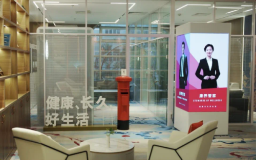 “科技感”可謂是移動體驗艙的一大亮點。五個體驗模塊中,“管家大屏”以獨特的“數字人”形象生動展示友邦在康養、教育、健康及財富管理方面的強大服務資源和團隊。“數字健康”則可為客戶提供包括近紅外成像、3D結構光成像、大數據分析等功能的智能體檢,幫助客戶即時了解個人健康狀況?!盁o憂養老”模塊,則以觸摸屏一體機的形式,系統呈現友邦人壽在教育、康養以及養老生活等方面的一站式服務資源?!爸腔劬蛹摇蹦K是最具趣味性的模塊,立體互動沙盤將體驗者帶入居家智慧養老迷你樣板間,沉浸式感受友邦人壽可提供的不同家庭生活場景下智能居家養老協調和適老化改造協調服務內容。