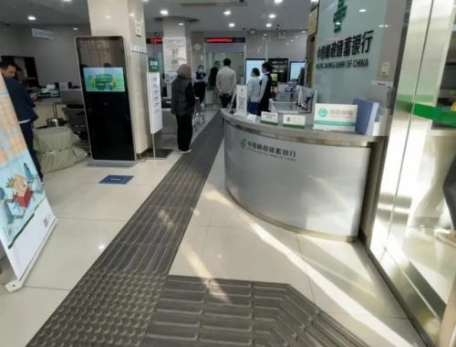 除了手語服務(wù),初次踏入香山支行的客戶或許還會發(fā)現(xiàn),行內(nèi)有一條灰色的盲道,從柜臺服務(wù)窗口延伸,直達(dá)主要街道。