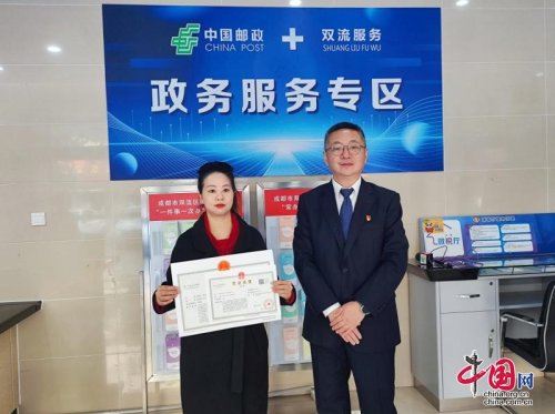 11月28日,雙流區行政審批局與中國郵政集團有限公司成都市雙流區分公司戰略合作協議簽訂儀式舉行。儀式上,雙方合作設立的首個“政務服務專區”窗口在長順路網點正式開始運行,并辦出第一份企業營業執照。