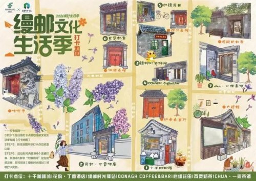 具體來看,活動期間,爛縵胡同里這七個打卡點位為“十千咖啡館”“花韻·丁香酒店”“縵郵時光驛站”“OONAGH coffee&bar”“爛縵花田”“瓦煲奶茶”以及“chua·一抹茶酒”。