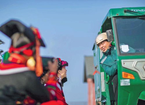 “阿咪子”見到郵政小哥到來,開心地與他交流。□吳敏 攝