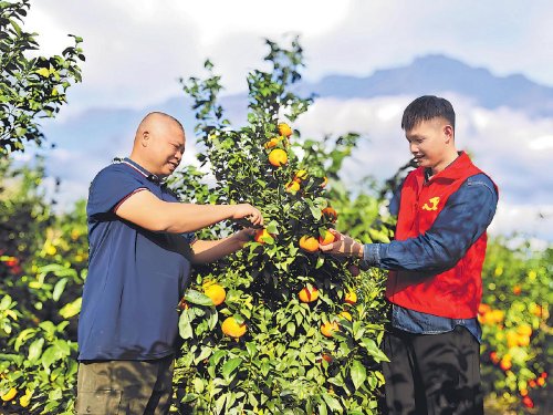 “中國沃柑看武鳴。”春節(jié)前正是廣西壯族自治區(qū)南寧市武鳴沃柑上市的時節(jié),南寧市郵政分公司以“黨旗紅 南郵旺”黨建品牌建設為抓手,組織以青年黨員為主的產業(yè)幫扶工作組,深入沃柑種植基地協助果農開展采摘、打包、收寄工作,并借助直播推動鮮果網銷四方,推動黨建工作與服務鄉(xiāng)村振興、打造沃柑產業(yè)協同互促。圖為南寧市分公司產業(yè)幫扶工作組成員與果農一起采摘沃柑。 □謝向炫 卓曉 攝影報道