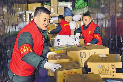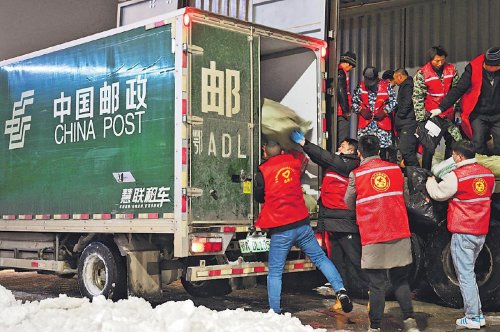 2月4日,為應對暴雪冰凍天氣,湖北省天門市郵政分公司機關全體黨員干部積極響應號召,深入一線,與員工一起,連夜緊急疏運2萬件郵件,有效緩解了郵件處理中心壓力,保障了郵運暢通和市民用郵需求。□劉志洪 攝影報道