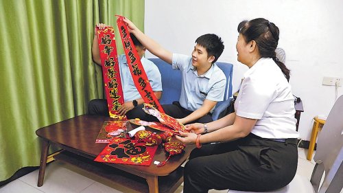 春節(jié)來臨之際,海南省三沙市郵政分公司黨支部宣傳委員、工會小組長來到三沙市永興島,看望堅守在崗的一線員工,并為支局送去了春聯、福字、日用品等,把“職工小家”裝點出濃濃的年味。□本報記者 黃文燕 攝影報道
