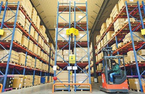 在馬瑞利近6000平方米的倉庫內(nèi),采用約800個(gè)立體貨架,郵政人員運(yùn)用倉儲(chǔ)信息系統(tǒng)進(jìn)行貨物管理,可實(shí)現(xiàn)自動(dòng)化的先進(jìn)先出管控。 □孫康 攝