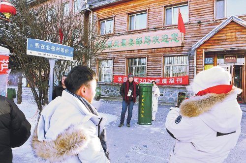 在北極村郵局,游客們踴躍打卡留下美好的旅行紀(jì)念?!醣緢?bào)記者 張丹丹 攝