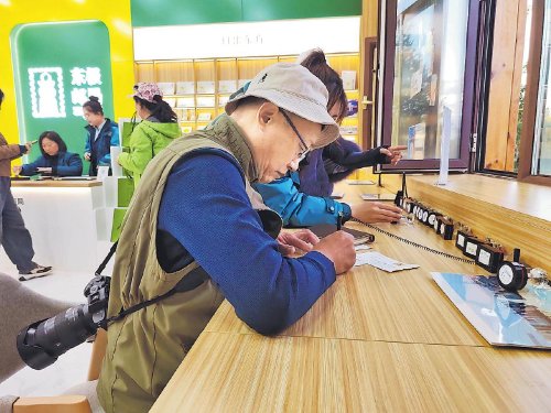 游客精心挑選明信片給親友寄祝福,也給自己留下珍貴的回憶。□本報(bào)記者 張丹丹 攝