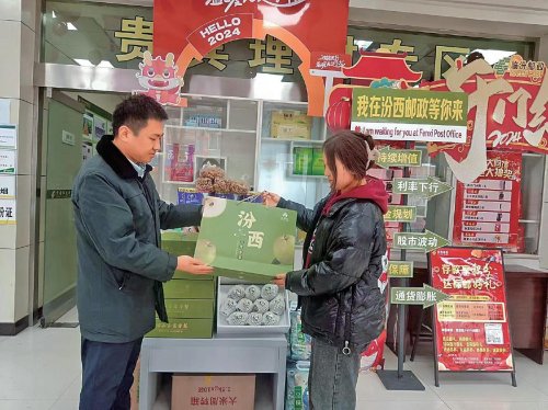 “玉露香梨皮薄、多汁,又新鮮又好吃。晚上下單,次日就能收到,非常方便!”樊女士是汾西縣廣場郵政支局的金融客戶,今年春節前,她通過支局訂購了十幾箱玉露香梨送給各地的親朋好友。