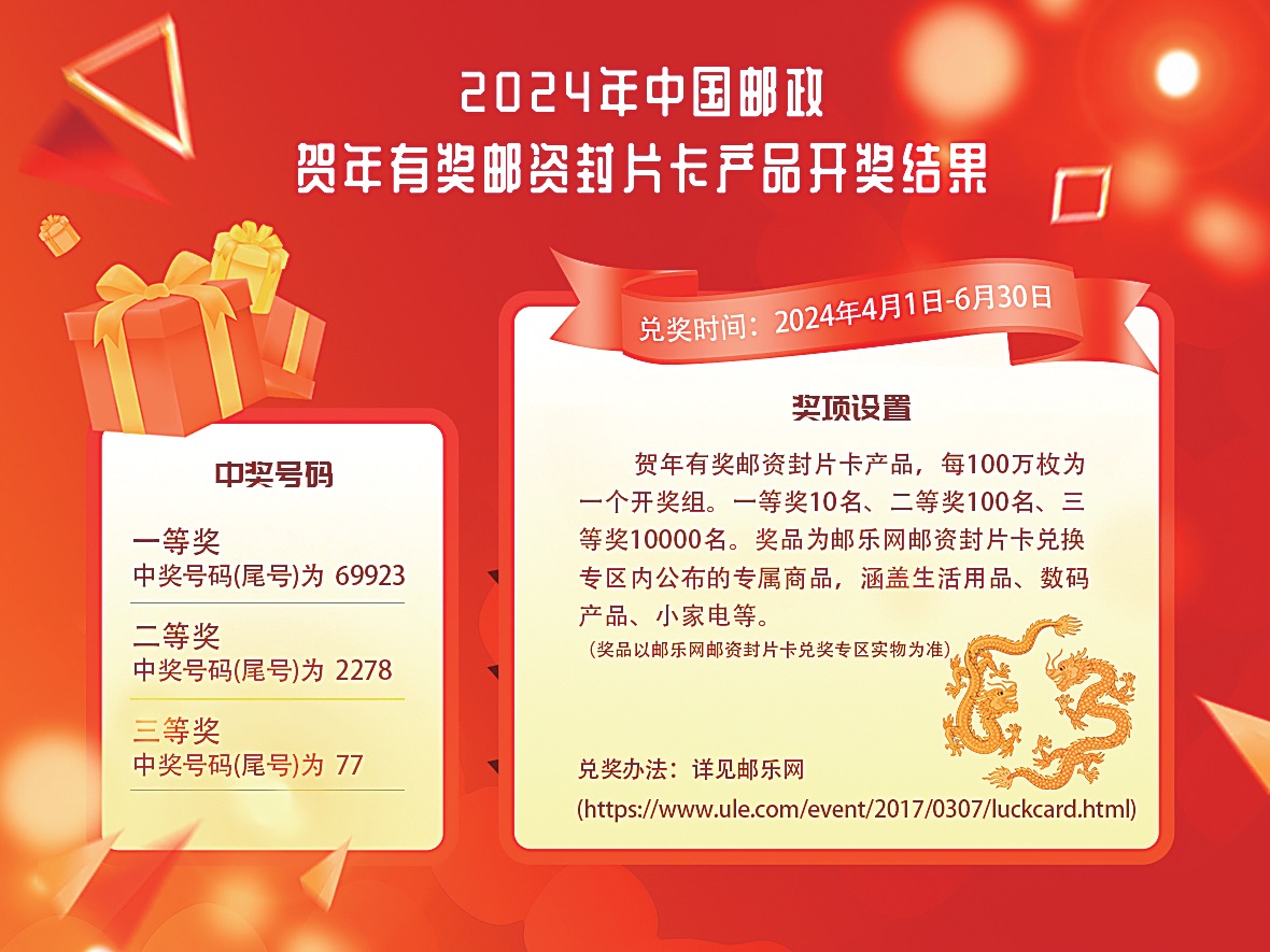 2024年中國郵政賀年有獎郵資封片卡產(chǎn)品開獎結果